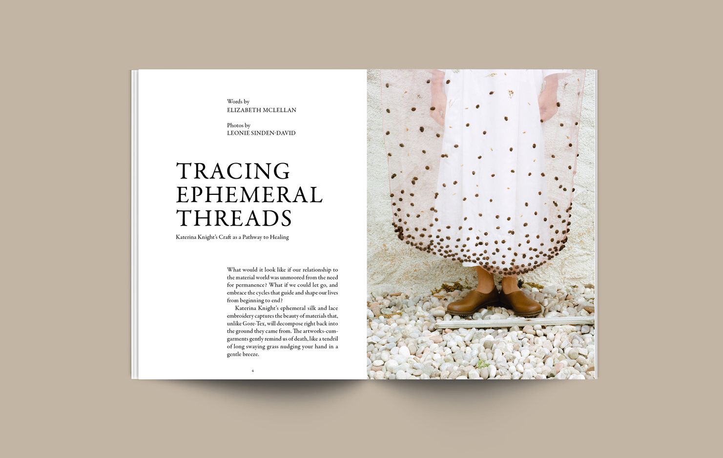 Vous y trouverez également des entretiens avec Veronica Bates Kassatly (sur le greenwashing dans la mode), Katerina Knight (sur l'artisanat comme voie de guérison), UK Fibreshed (de la ferme à la penderie), et un tutoriel sur l'impression de soie avec des fleurs sauvages par Paula Delgado de la marque de vêtements ound.